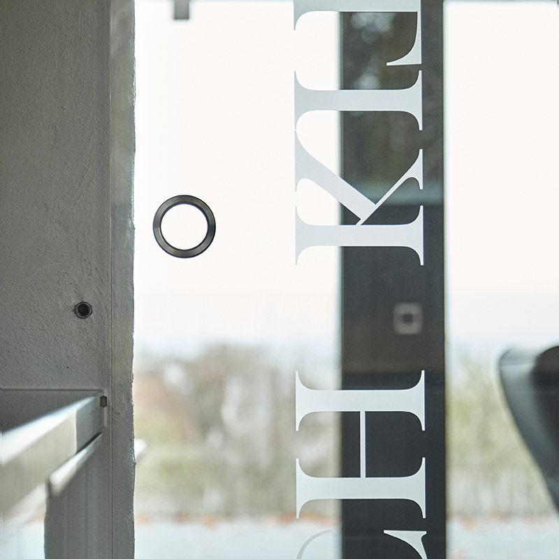 Den firkantede skinne kan både loft- og vægmonteres, hvilket gør en Muto Skydedør med glas indvendig yderst anvendelig til næsten alle løsninger.